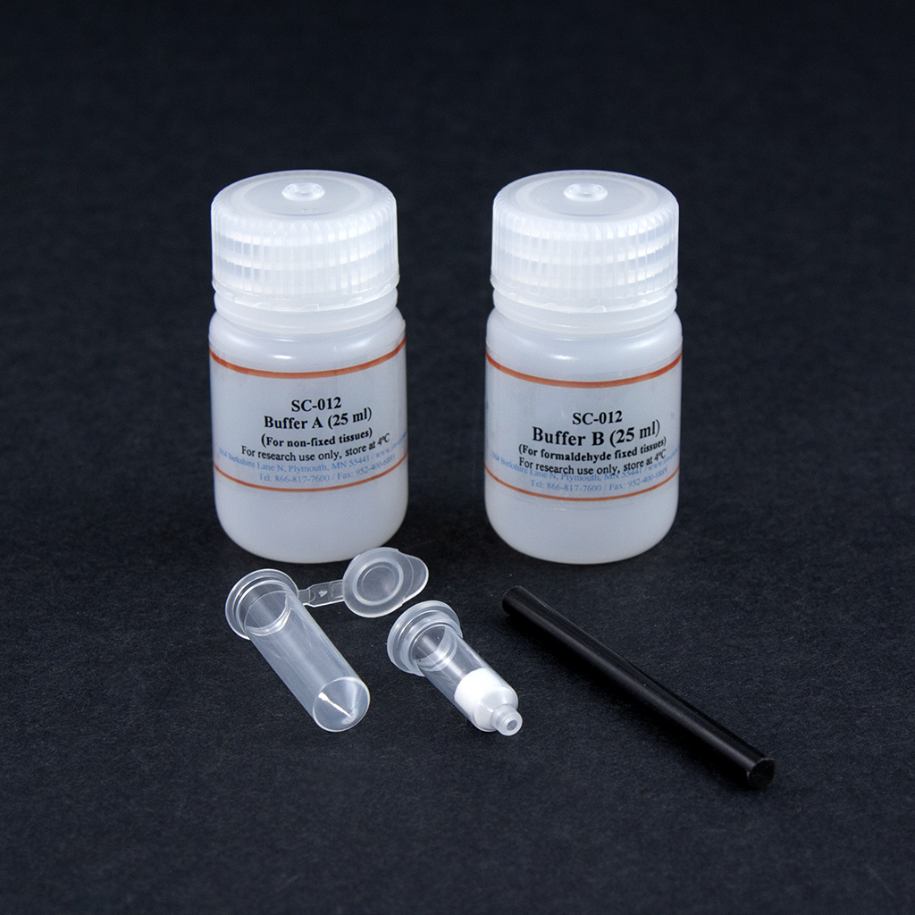 MinuteTM single cell isolation kit comprises optimized tissue disaggregation buffers and specially designed filter cartridges with 2.0 ml collection tubes. The kit is designed to isolate single cells from fresh animal tissues rapidly, and it can also isolate nuclei from tissues briefly fixed with formaldehyde for chromosome immunoprecipitation (ChIP). The tissue disaggregation buffers are formulated to disaggregate animal tissues gently. The buffers don’t contain any proteinases and EDTA that may adversely affect cell surface markers. Due to filter cartridges with pre-defined pore size and a specially formulated buffer system, single-cell suspension can be obtained from fresh tissues in less than 10 min. This kit is specifically designed for lymphoid tissues such as the spleen, thymus, and lymph node. For other tissues, the performance is tissue type-dependent. For cell suspension isolation from frozen/fresh tissues, please refer to Cat# CS-031.